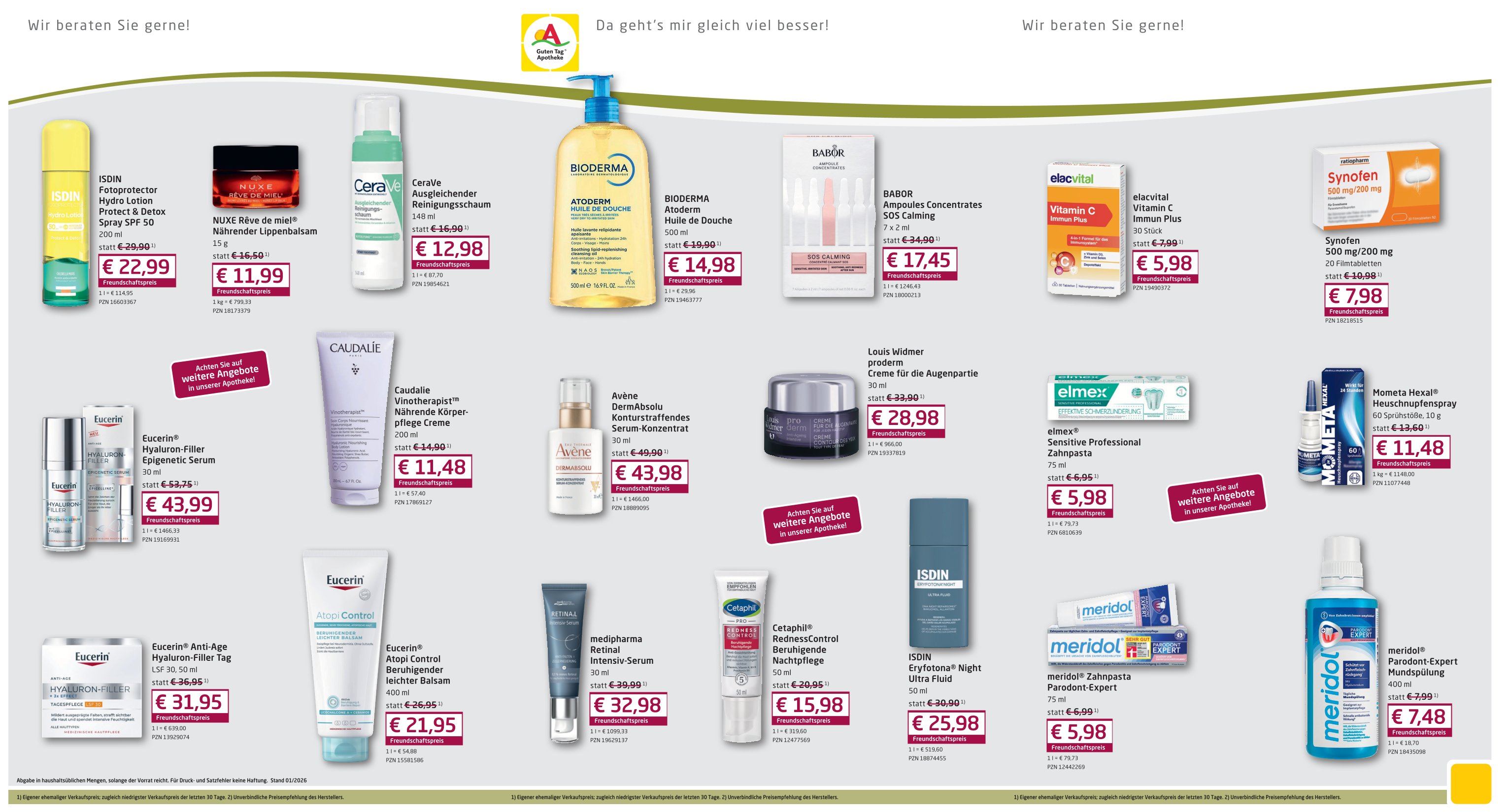 * Auszug aus dem Beipackzettel. ** Vorheriger Verkaufspreis in unserer Apotheke. *** Nahrungsergänzungsmittel sollten nicht als Ersatz für eine abwechslungsreiche und ausgewogene Ernährung verwendet werden. Achten Sie auf eine gesunde Lebensweise. Die empfohlene tägliche Verzehrmenge sollte nicht überschritten werden. Bitte das Produkt außerhalb der Reichweite von Kindern aufbewahren. Umfassende Informationen erhalten Sie auf Wunsch von unserem Personal. Zu Risiken und Nebenwirkungen lesen Sie die Packungsbeilage und fragen Sie Ihre Ärztin, Ihren Arzt oder in Ihrer Apotheke. Artikel können ähnlich der Abbildung sein. Abgabe nur in haushaltsüblichen Mengen. Für Inhalt und Druckfehler keine Haftung.